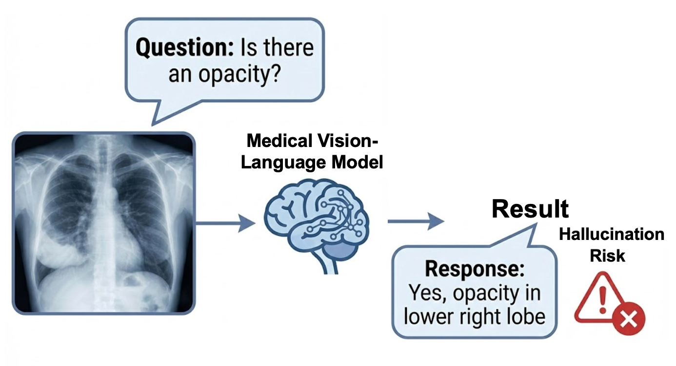 Vision-amplified semantic entropy for hallucination detection in medical visual question answeringZehui Liao, Shishuai Hu, Ke Zou, Huazhu Fu, Liangli Zhen*, and Yong Xia*MICCAI, 2025Multimodal large language models (MLLMs) have demonstrated significant potential in medical Visual Question Answering (VQA). Yet, they remain prone to hallucinations—incorrect responses that contradict input images, posing substantial risks in clinical decision-making. Detecting these hallucinations is essential for establishing trust in MLLMs among clinicians and patients, thereby enabling their real-world adoption. Current hallucination detection methods, especially semantic entropy (SE), have demonstrated promising hallucination detection capacity for LLMs. However, adapting SE to medical MLLMs by incorporating visual perturbations presents a dilemma. Weak perturbations preserve image content and ensure clinical validity, but may be overlooked by medical MLLMs, which tend to over-rely on language priors. In contrast, strong perturbations can distort essential diagnostic features, compromising clinical interpretation. To address this issue, we propose Vision Amplified Semantic Entropy (VASE), which incorporates weak image transformations and amplifies the impact of visual input, to improve hallucination detection in medical VQA. We first estimate the semantic predictive distribution under weak visual transformations to preserve clinical validity, and then amplify visual influence by contrasting this distribution with that derived from a distorted image. The entropy of the resulting distribution is estimated as VASE. Experiments on two medical open-ended VQA datasets demonstrate that VASE consistently outperforms existing hallucination detection methods. The code will be available at https://github.com/Merrical/VASE.
